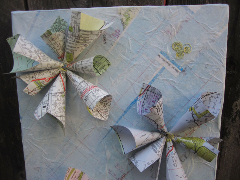 Teen (ages 13-18) winner Karsen used an old atlas to create an untitled piece with blooming flowers.