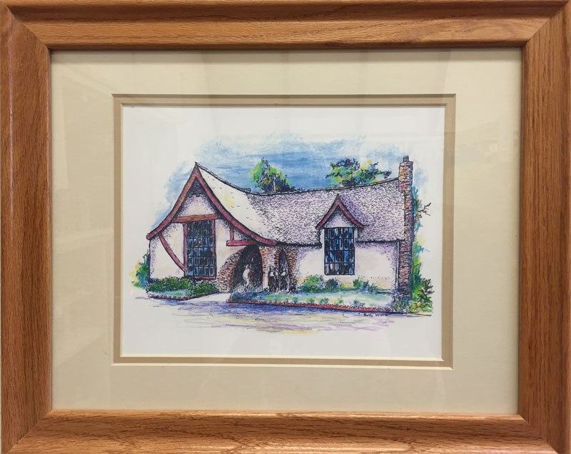 Local artist Betty Irvine stopped in to the library the other day to donate her artwork of the library in its early days. You can find it hanging over the water fountain next time you’re in the library.