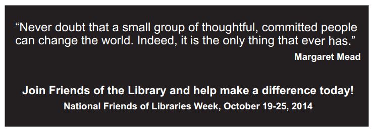 Today is the last day of National Friends of Libraries Week. Coming off our extraordinary Fall Book Sale last weekend (a big thank you to all who donated books, staffed the sale and purchased books for helping make this our most successful sale yet!) and a productive meeting with other OPL Friends groups last week, I’m freshly aware of the good things Friends groups do for the library, at Montclair and all over town.