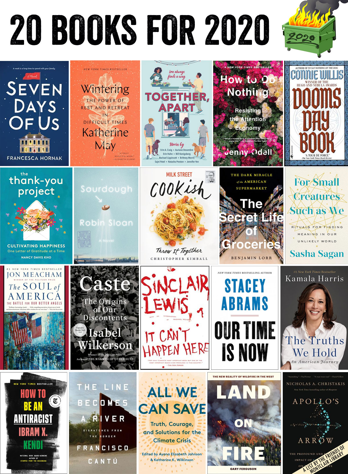 Books can distract us from reality, connect us to diverse stories, provide context for our current situation, and help us do something as complex as find a path through difficult times or as mundane as plan our next meal. Here are 20 books – some new, some old; some fiction, some non-fiction – that embrace, encapsulate and assuage the times we’re living through.
